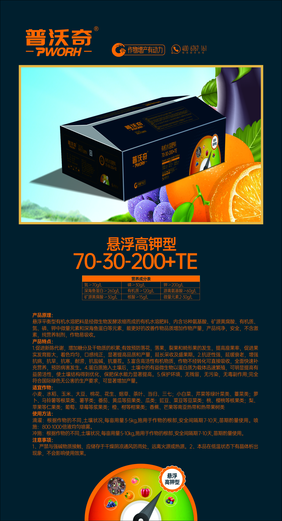 悬浮高钾型有机水溶肥料是经微生物发酵浓缩而成的有机水溶肥料,内含18种氨基酸、矿源黄腐酸、有机质、氮、磷、钾中微量元素和深海鱼蛋白等元素,能更好的改善作物品质增加作物产量,产品纯净,安全,不含激素,纯营养制剂,作物易吸收。